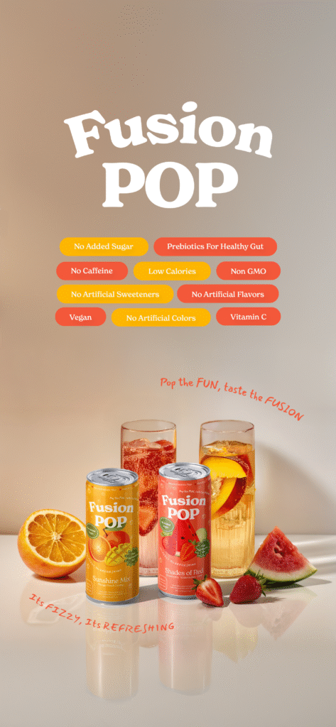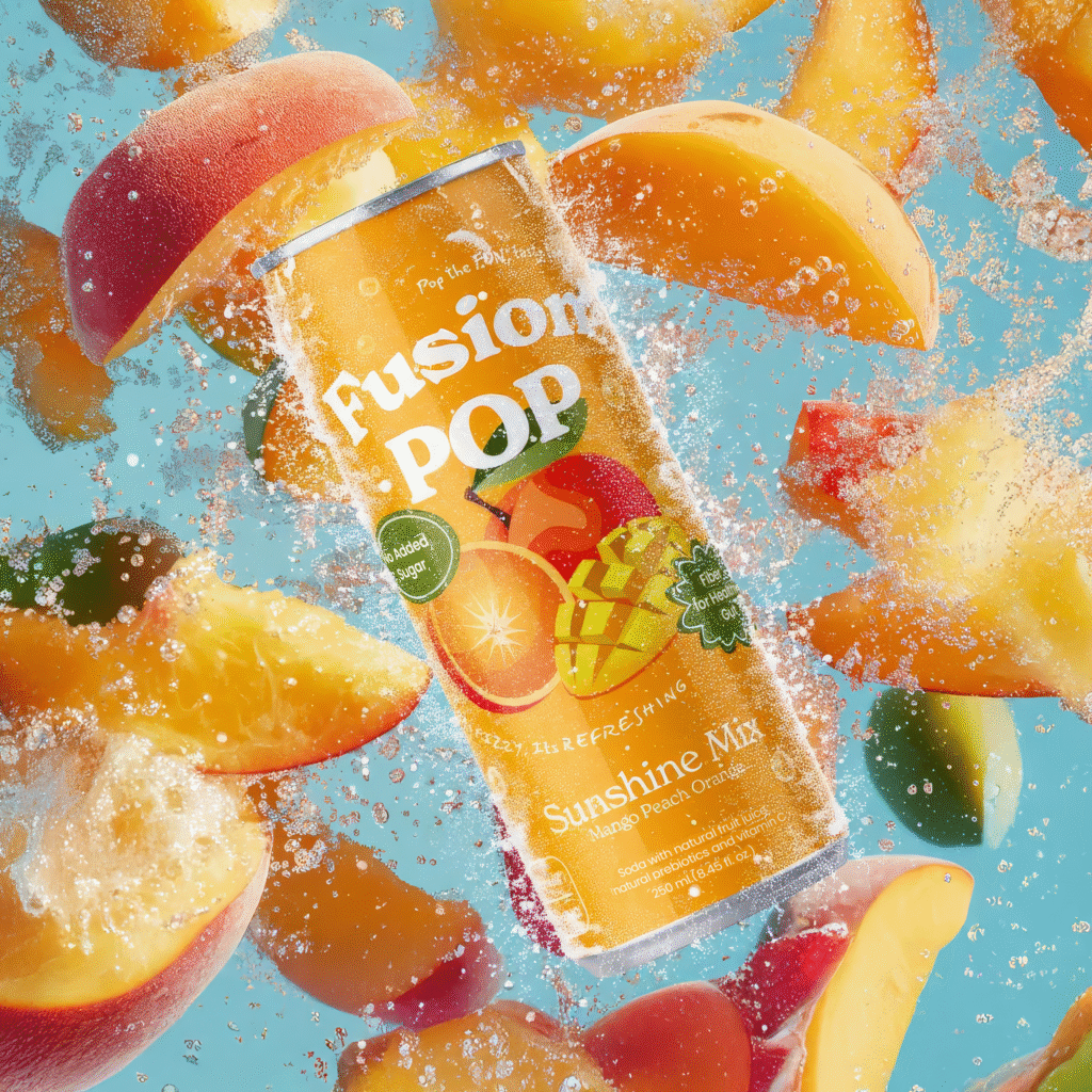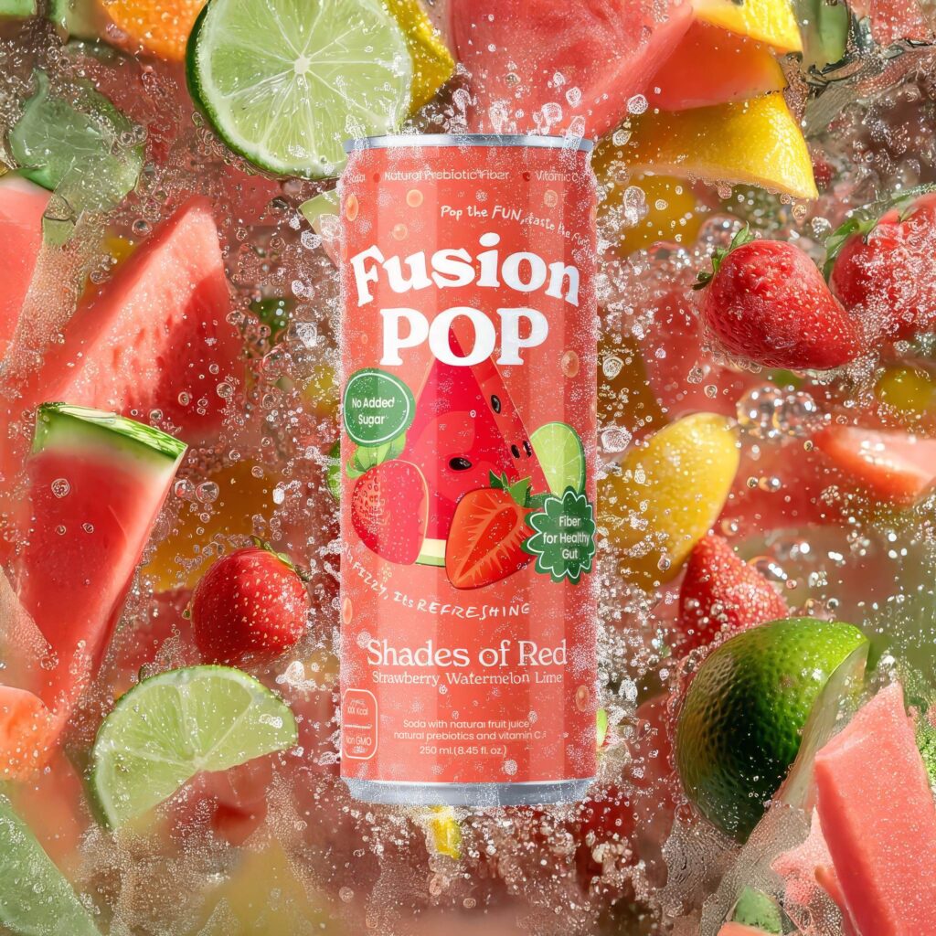 Fusion Pop is a delicious fusion of fruit flavors and sparkling refreshing soda, boosted with prebiotic fiber for gut health and vitamin C for immune support.